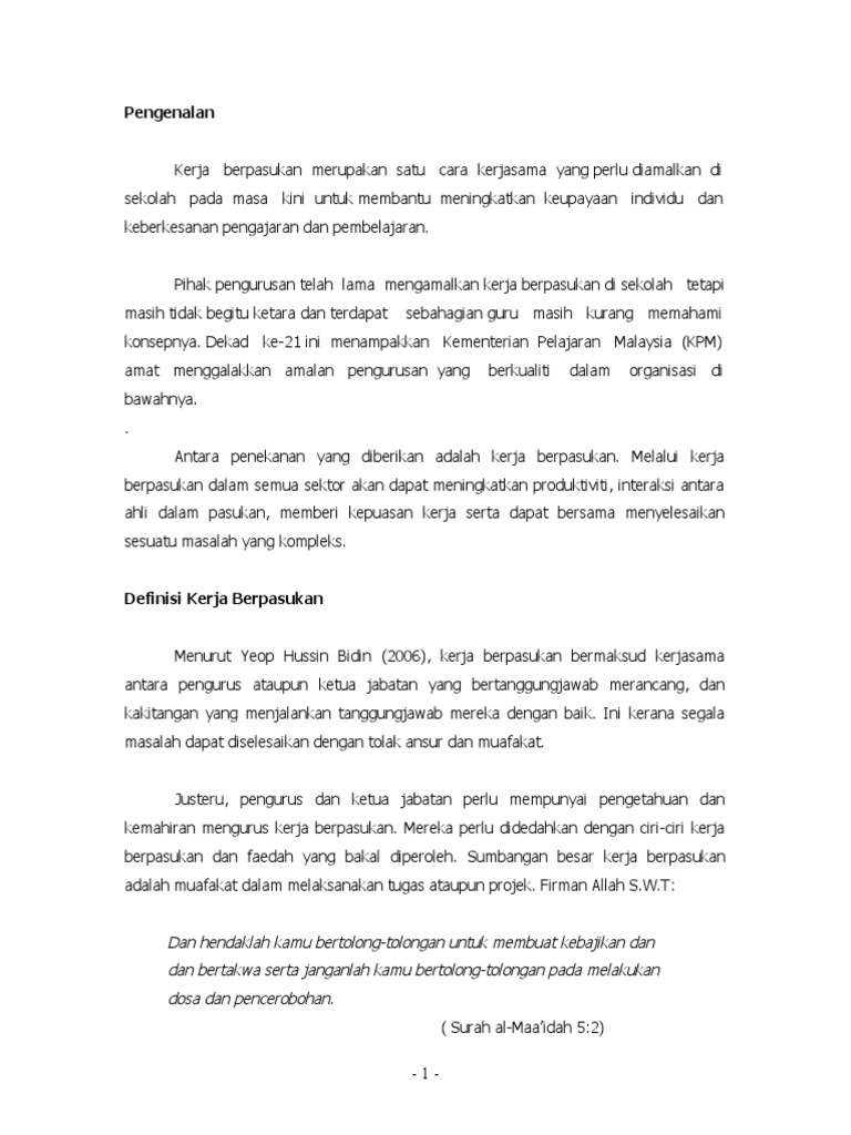 . View flipping ebook version of LAPORAN AKHIR LATIHAN INDUSTRI NUAIM PAIP published by Nuaim Ismail on 2020-12-01. Definisi kerja berpasukan merujuk kepada suasana kerja dalam pasukan yang mengamalkan nilai kerjasama dan saling berganding bahu dalam menjalankan tugas untuk mencapai objektif yang sama. Di antara objektif latihan seperti berikut.
